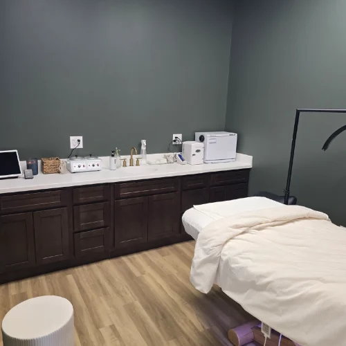 Pure Beauty’s renovated interior blends style and functionality, positioning the business for growth while reinforcing its commitment to professionalism and exceptional client care. From the inviting reception area to the thoughtfully planned treatment room, every element of the build‑out is designed to enhance the customer experience and support high‑quality beauty services.